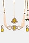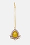 Featuring an oxidised gold finish necklace studded with kundan polki, moissanite and yellow semi-precious stones, set in brass. It is paired with a matching pair of earrings and a maangtikka. Accentuate this elegant jewellery set with your look for a polished finish, ideal for festive functions, family gatherings or wedding celebrations.