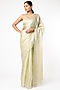 Featuring a sage green saree in satin organza base with tassels and sequins embroidery. It is paired with a matching satin draped blouse and a cambric lycra underskirt.