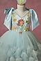 Blue Bridal Satin & Net Hand Embroidered Tie-Up Dress For Girls