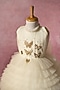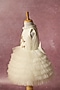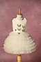 Off-White Net Hand Embroidered Layered Dress For Girls