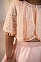 Featuring a peach cape for girls in bridal satin and tulle base with embroidery. It is paired with an embroidered blouse, a lehenga and a hair accessory. Style it with sandals and hair accessories for festive occasions or sangeet ceremony.