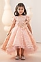Pink Jacquard & Tulle Hand Embroidered High-Low Gown For Girls