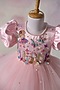Featuring a pink dress for girls in net base with hand embroidery. Style it with sandals and hair accessories for birthday party or playdate.