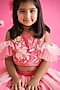 Featuring a pink lehenga for girls in tulle net base with ombre layers and hand embroidery. It is paired with an embroidered top having floral, frill and off-shoulder sleeves. Style it with cute hair accessories for a festive occasion or wedding ceremony.