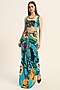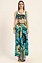 Featuring a firozi blue top in crepe base with digital print. It is paired with a draped skirt. Accentuate statement jewellery and heels for an engagement, cocktail or sangeet ceremony.