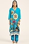 Featuring a firozi blue kurta in organza base with hand embroidery and digital print. It is paired with satin straight pants and an embroidered dupatta. Accentuate statement jewellery and heels for an engagement, cocktail or sangeet ceremony.