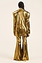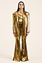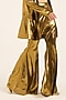 Featuring a golden blazer in metallic lycra base. It is paired with a bralette and bell-bottom pants. Style it with statement jewellery and heels for an evening party look.