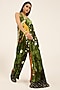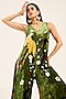 Featuring a green jumpsuit in silk velvet base with digital print. Accentuate it with statement jewellery and heels for a complete look.
