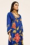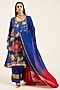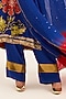 Featuring an ink blue kurta in satin base with digital print, gota, abstract floral artwork and hand embroidery. It is paired with pants and a dupatta. Style it with statement jewellery and heels for a festive occasion or family gathering.