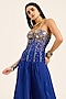 Featuring an ink blue corset top in sheer organza base with mirror work and hand embroidery. Style it with statement jewellery and heels for a festive occasion or family gathering.