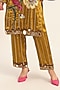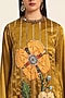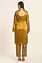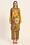 Featuring an ochre yellow kurta in satin chiffon base with digital print, mirror, abstract floral artwork and hand embroidery. It is paired with pants and a dupatta. Style it with statement jewellery and heels for a festive occasion or family gathering.