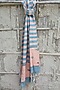 Featuring a beige handwoven stole in cotton base with blue stripes.