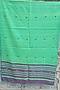Featuring a green handwoven stole in cotton base with purple stripes border.