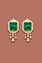Featuring a 18kt gold plated necklace studded with emerald and moissanite polki, set in 92.5 sterling silver. It is paired with a matching pair of earrings.