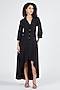 Featuring a black asymmetrical shirt dress in brushed suiting fabric base with faux leather detailing. Accentuate this dress with hoop earrings and a sling bag for a perfect evening look.