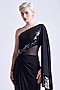 S&N by Shantnu Nikhil features a black one-shoulder gown saree in jersey base with embellishments. Style it with silver or swarovski jewellery and metallic heels for cocktail party, dinner or evening soiree.