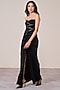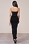 Featuring a black corset draped gown in jersey spandex foil base with a slit. Accentuate it with statement jewellery and heels for a cocktail or evening wear.