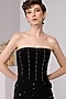 Featuring a black corset draped dress in poly jersey base with motifs. Accentuate it with stud earrings, a clutch, a sleek hair updo and block heels, ideal for evening or cocktail soirees.