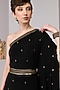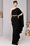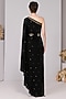 Featuring a black one-shoulder draped gown in poly jersey base with S and N adamas motifs and faux leather belt. Accentuate it with stud earrings, a clutch, a sleek hair updo and block heels, ideal for evening or cocktail soirees.