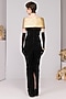 Featuring a black gown in poly jersey base with quilted gold cape detailing. Accentuate it with hoop earrings, a clutch, a sleek hair updo and block heels, ideal for evening or cocktail soirees.