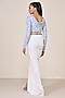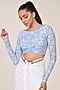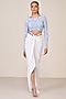 Featuring a light blue draped top in jersey and spandex blend base with patchwork. Accentuate with pants, hoop earrings and sandals for a complete look.