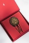 Featuring a black handcrafted brooch in faux leather base with crest and metallic chains.