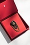 Featuring a black handcrafted brooch in faux leather and metal base.
