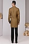Featuring a black and gold kurta in silk twill base with print and faux leather detail. Accentuate it with pants and a pair of mojaris for a festive occasion or sangeet ceremony.