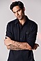 Featuring a black crested shirt in poly blend and faux leather base. This contains one piece only.