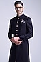 Black Poly Blend Viscose Lycra Sherwani