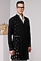 Featuring a black draped kurta in terylene viscose lycra base with embroidery. Accentuate it with pants and a pair of mojaris for a festive occasion or sangeet ceremony.