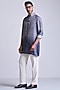 S&N by Shantnu Nikhil Men features a grey kurta crafted in a silk twill fabric with an adamas gradient print. Accentuate it with tailored trousers and mojris for a refined and contemporary look. Perfect for festive occasion or sangeet ceremony.