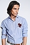 Featuring a light blue striped shirt in cotton and suiting fabric base with logo patchwork. This contains only one piece.