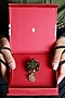 Featuring a military green handcrafted dual brooch in camo jacquard and faux leather base studded with adamas and metallic detailing.