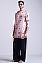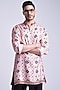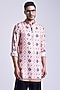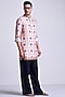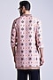 S&N by Shantnu Nikhil Men features a pink kurta crafted in a silk twill fabric with mosaic print and a structured band collar. Accentuate it with tailored trousers and mojris for a refined and contemporary look. Perfect for festive occasion or sangeet ceremony.