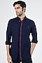 Featuring a navy blue shirt in cotton knit base with thread work.
