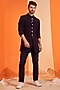 Featuring a navy blue sherwani in poly blend, viscose, lycra and faux leather base with coin buttons and tape detailing. Accentuate with pants and pair of mojaris for festive occasions or wedding?ceremonies.