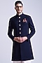Navy Blue Poly Blend Viscose Lycra Sherwani