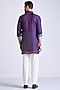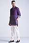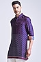 S&N by Shantnu Nikhil Men features a navy blue kurta crafted in a silk twill fabric with an adamas lattice print. Accentuate it with tailored trousers and mojris for a refined and contemporary look. Perfect for festive occasion or sangeet ceremony.