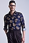 S&N by Shantnu Nikhil Men features a navy blue shirt crafted in a silk twill fabric with skull print. Accentuate it with tailored trousers and classic footwear for a refined and contemporary look. Perfect for festive gatherings, evening events or semi-formal occasions.