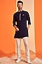 Featuring a navy blue kurta in terylene, viscose, lycra, poly blend and cotton base with tape detailing. Style it up with pants, a pair of loafers for a festive occasion, sangeet or engagement ceremony.