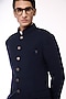 Navy Poly Blend Viscose Lycra Bandhgala