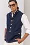 Featuring a navy waistcoat in rayon nylon spandex base with embroidery, metallic buttons and faux leather detail. Accentuate it with trousers and pair of loafers for festive occasions or ceremonial events.