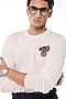Featuring an off-white sweater in merino wool base with a round neck and crest detail. Style it with trousers, shoes and a sleek watch for a semi-formal event, workshops, casual meet-ups, office wear or dinner outings.