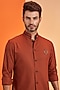 Featuring a rust slim-fit shirt kurta in poly blend, viscose, and wool base with crest embroidery, metallic buttons, and nehruvian collar. This contains only one piece.