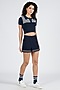 Navy Blue Viscose & Nylon Crop T-Shirt
