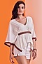 Featuring an off-white asymmetric cape top in poly blend and satin base with an attached faux leather belt. This contains one piece only.