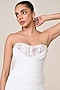 Featuring a white corset mini draped dress in jersey spandex blend base with applique work. Accentuate it with dangler earrings and heels for cocktail parties.