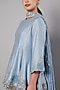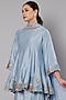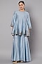 Featuring a dusty blue kurta in chanderi base with floral applique hand embroidery and beadwork. It is paired with flowy sharara and a mul chanderi dupatta. Accentuate it with dangler earrings and heels for a festive occasion, cultural event, wedding or engagement ceremony.