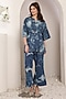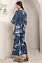 Featuring a cobalt blue tie-dyed kimono-style top in denim base with crystal embroidery. It is paired with bell-bottom trousers. Accentuate it with stud earrings, a sling bag and mules for evening wear or casual outings.